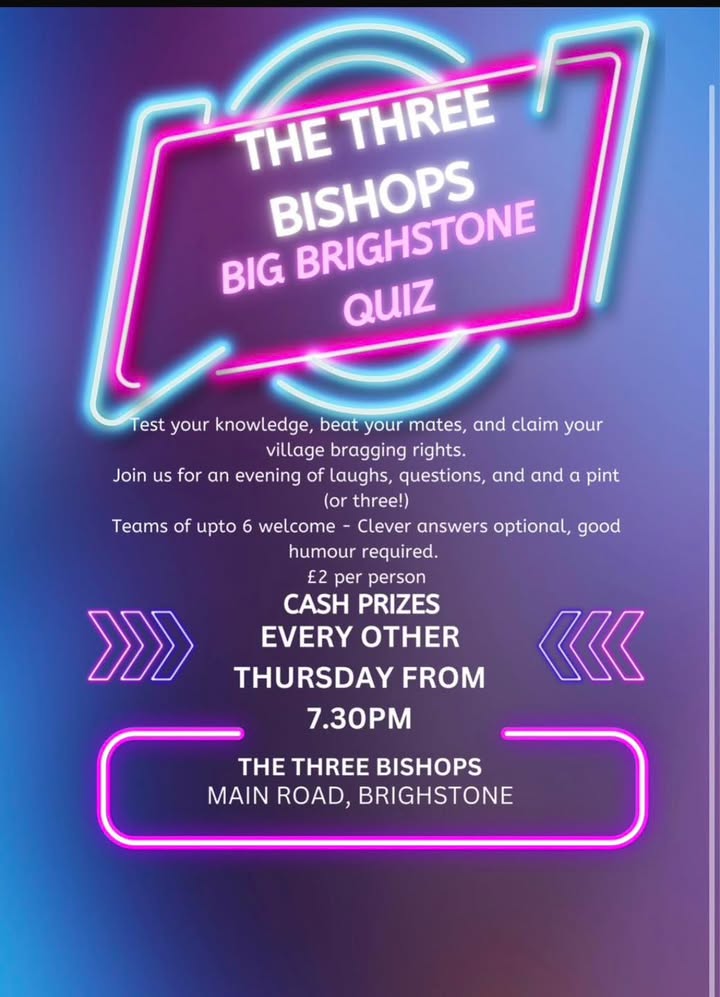 Don’t forget The Big Brighstone quiz starts tonight at 7.30pm 🤓